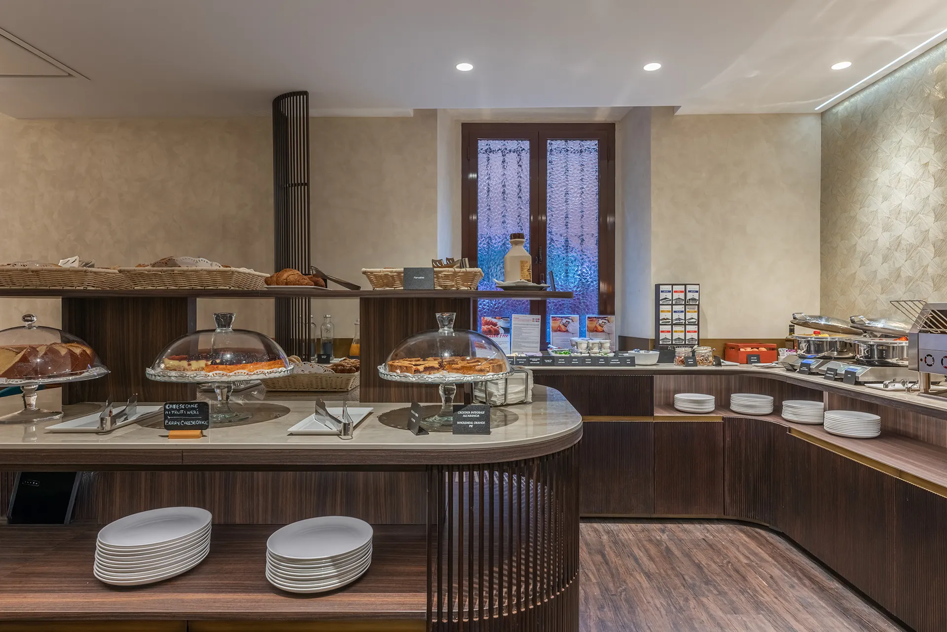 Potrete scegliere tra la classica colazione all’italiana con cornetti appena sfornati, colazione continentale con cereali, yogurt e succhi di frutta oppure all’Americana con bacon, uova strapazzate, salumi e formaggi tipici.